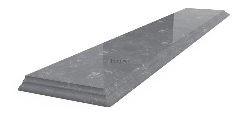 Aglomerovaný mramor je ideální pro okenní parapety, schody, pracovní desky. Výrobní norma: Rozměrová tolerance +/-5 mm, čelní strana leštěná se zkosením spodní a horní hrany, boční strany leštěné na 5–10 cm se zkosením spodní a horní hrany. Pokud mají být boční strany parapetů broušené po celé šířce, je nutné tuto skutečnost uvést v poznámkác.